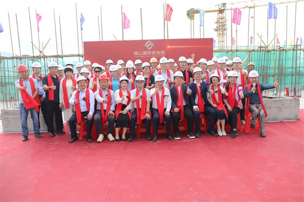 上午10时整,伴随激昂的音乐与飘扬的旗帜,园山国际珠宝园封顶仪式正式启幕。