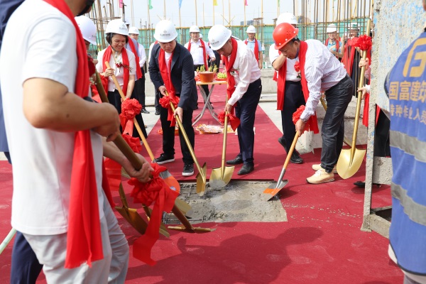 吉时已至,主礼嘉宾们共同执起系着红绸的金锹,缓缓铲下最后一方混凝土——金光闪耀间,象征着园山国际珠宝园主体结构顺利封顶,也标志着项目建设迈入全新阶段。